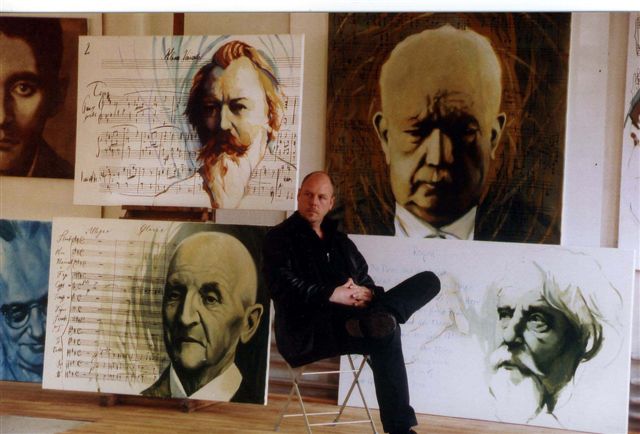 Johannes Kaufmann mit den Porträts für das im Vienna Hilton Hotel